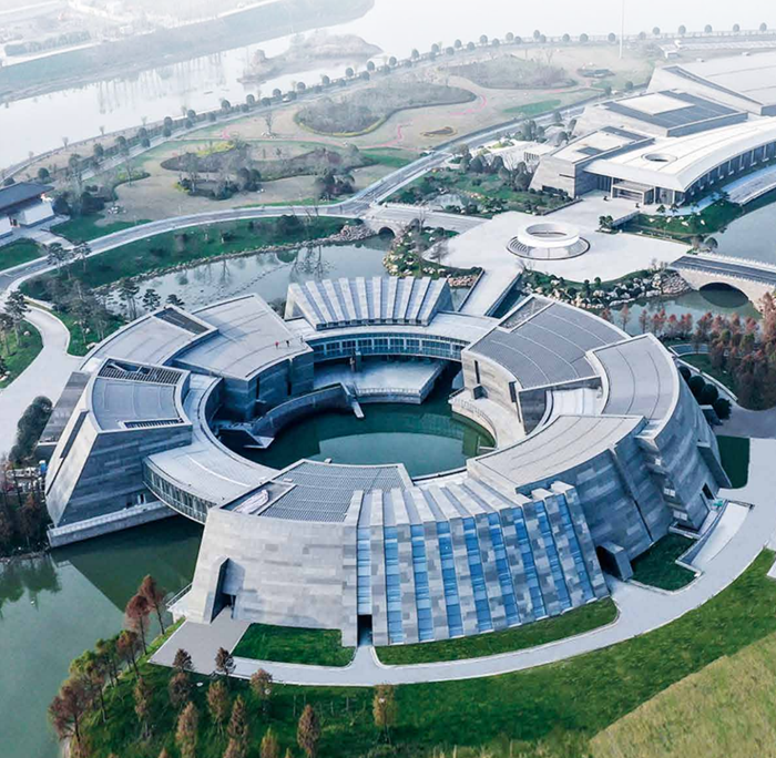 南京上秦淮國(guó)際文化交流中心是南京未來科 技城貫徹落實(shí)省市區(qū)黨委、政府要求,著力 提升園區(qū)國(guó)際水平,加快發(fā)展會(huì)展產(chǎn)業(yè),更 好承接全球未來網(wǎng)絡(luò)峰會(huì)等國(guó)際會(huì)展項(xiàng)目而 重點(diǎn)建設(shè)的國(guó)際化載體,將打造成為全球未 來網(wǎng)絡(luò)峰會(huì)永久會(huì)址。建筑主體委托建筑界 領(lǐng)軍人物姚仁喜建筑師設(shè)計(jì),設(shè)計(jì)的最大亮 點(diǎn)在于古典與現(xiàn)代的融合碰撞,整個(gè)建筑風(fēng) 格鮮明,既不失中式意境之美,又科技感十 足,同時(shí)與周邊的景觀有機(jī)融合。