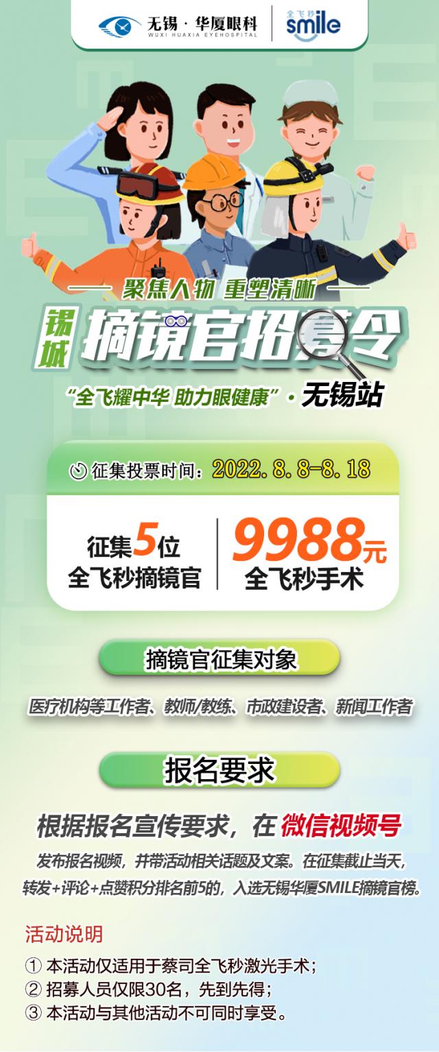 - 無錫華廈眼科征集5位「全飛秒摘鏡官」!不到萬元做近視手術(shù)!
