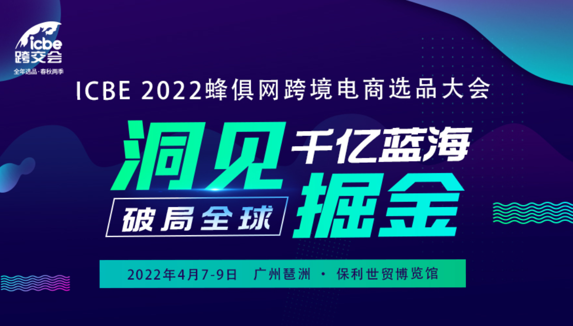 ICBE跨境電商選品大會,2022年4月7-9日,廣州保利世貿博覽館舉行,亞馬遜及東南亞賣家專場峰會,全面解讀跨境爆款選品策略,助力春季旺季尖貨爆款選品,嚴選商家,精準對接,超值干貨,精彩不容錯過!