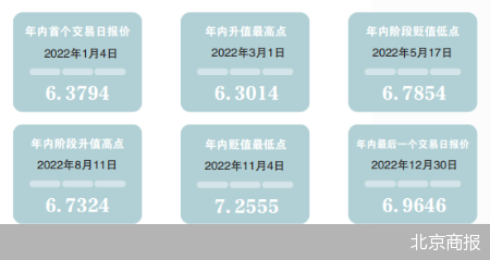 北京商報記者根據中國貨幣網數據整理發現,2022年全年,人民幣對美元匯率中間價累計貶值5889基點,貶值幅度超9.23%,這也創下了自2015年“8·11匯改”以來人民幣中間價的最大貶值幅度。