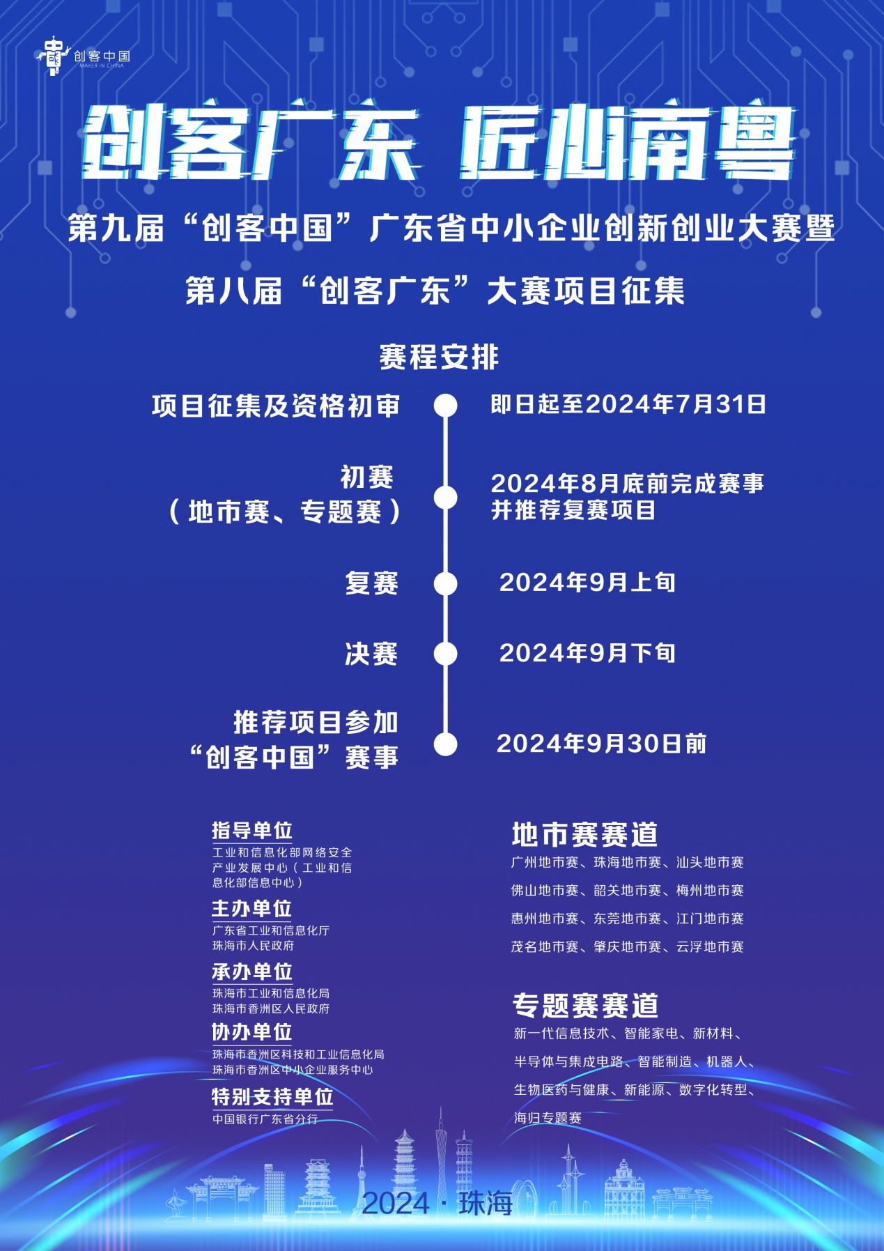 南海之濱,千帆競(jìng)發(fā),新質(zhì)生產(chǎn)力在這片創(chuàng)新熱土蓬勃發(fā)展,為高質(zhì)量發(fā)展注入強(qiáng)大活力。近日,省工業(yè)和信息化廳和珠海市人民政府聯(lián)合舉辦的第九屆“創(chuàng)客中國(guó)”廣東省中小企業(yè)創(chuàng)新創(chuàng)業(yè)大賽暨第八屆“創(chuàng)客廣東”大賽正式啟動(dòng)。大賽以“創(chuàng)客廣東匠心南粵”為主題,于今年7月至9月在廣東珠海舉辦。符合條件的企業(yè)和創(chuàng)客(以下統(tǒng)稱(chēng)參賽者)均可通過(guò)“創(chuàng)客廣東”大賽官網(wǎng)注冊(cè)登記,報(bào)名參加地市賽或?qū)n}賽。