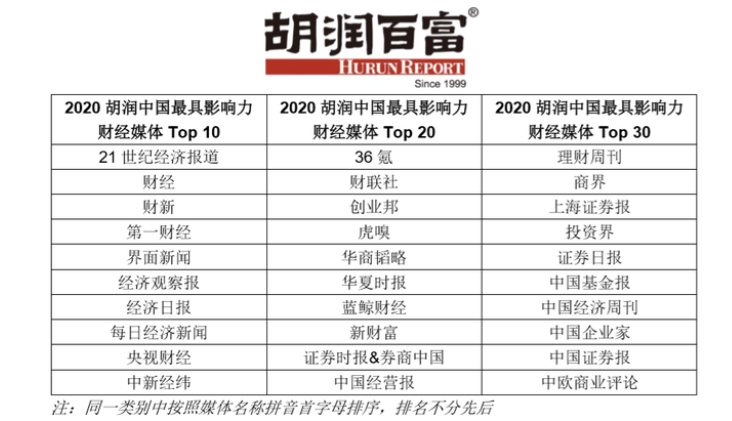 (2020年10月16日,北京)胡潤百富今日發(fā)布《2020胡潤中國最具影響力財經(jīng)媒體榜》(Hurun China Most Influential Business Media Awards 2020)。這是胡潤百富連續(xù)第二次發(fā)布此榜單。