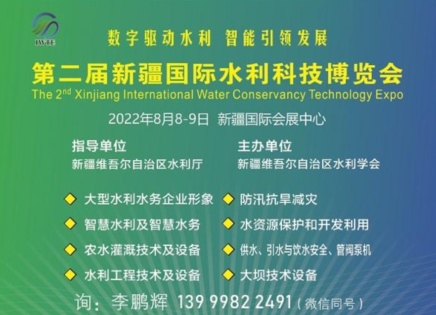 為深入貫徹落實“節水優先、空間均衡、系統治理、兩手發力”的治水思路,踐行“水利工程補短板、水利行業強監管”水利改革發展總基調,加快我國智慧水利建設,同時為新疆“十四五”時期“大手筆”興修水利建設提供科技支撐和設備保障,全面展示水利行業前沿科技和優秀成果,為政府、企業及專家學者提供一個高端、專業、國際化的技術交流與合作、品牌推廣和商機對接的綜合服務平臺。第二屆新疆國際水利科技博覽會暨新疆水利科技創新發展論壇”(以下簡稱“新疆水利展”)將于2022年8月8日至9日在新疆國際會展中心舉辦。