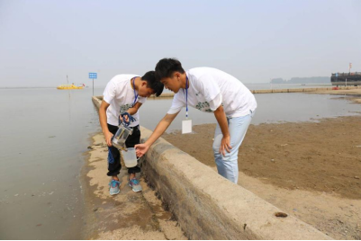 實踐團大學生赴洪澤湖流域。洪澤湖有凈化水體、調節氣候、蓄洪抗旱、提供優良水質等作用。實踐團耐著三伏天的酷熱實地收集洪澤湖水,并在專業教師的指導下,利用水質檢測儀,賽克盤,采水器等檢測儀器對水體的濃度,濁度,PH值等進行一系列檢測,了解水質富營養化程度。為日后提升和改善洪澤湖水質提供科學,有效的技術支持和保障。