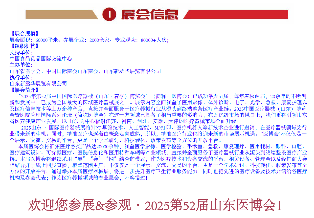 2025山東醫療器械展|2025濟南醫療器械展|2025第52屆山東(濟南)·春季國際醫療器械展覽會